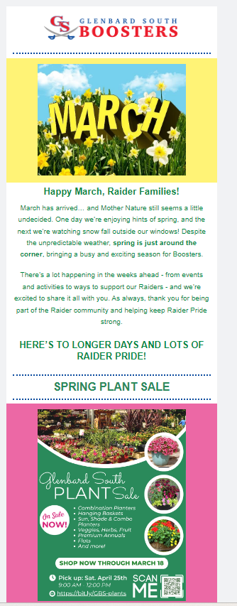The Glenbard South Boosters Annual Plant Sale features beautiful, locally grown plants from a trusted nursery known for vibrant flowers and strong, healthy plants that thrive all season long.