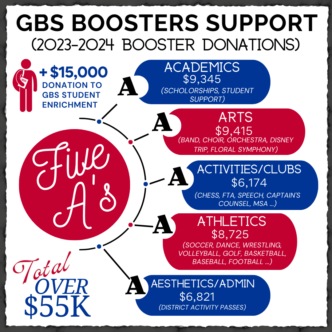 When you donate to the Glenbard South Boosters, you are supporting our Five A’s: Academics, Arts, Activities/Clubs, Athletics, and Aesthetics/Administration