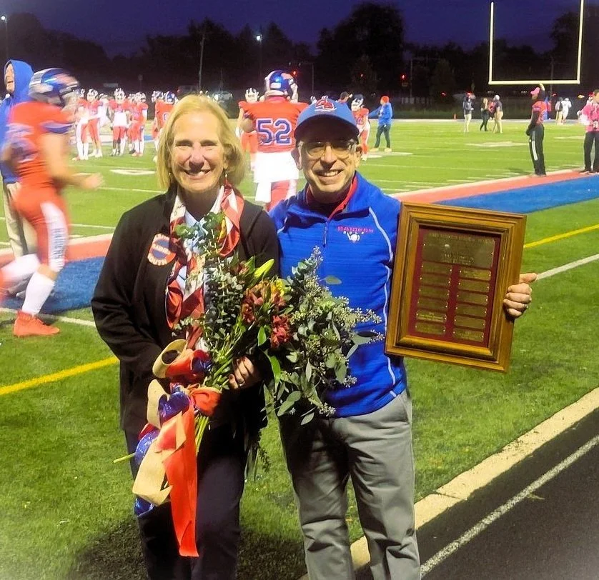 For 35 years, the Weinstein Awards, named after South’s first Booster’s President, the late Jerry Weinstein, have been presented annually to individuals who exemplify commitment, dedication, and extraordinary achievement in support of Glenbard South’s students and community. We are thrilled to honor two beloved members of the Raider family, Mr. Mark Pfefferman and Mrs. Martha Loomis Pfefferman.