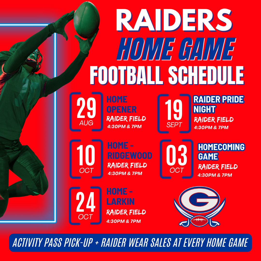 Activity Passes and VIP Parking Passes can be picked up at all Glenbard South home football games and select school-wide events.